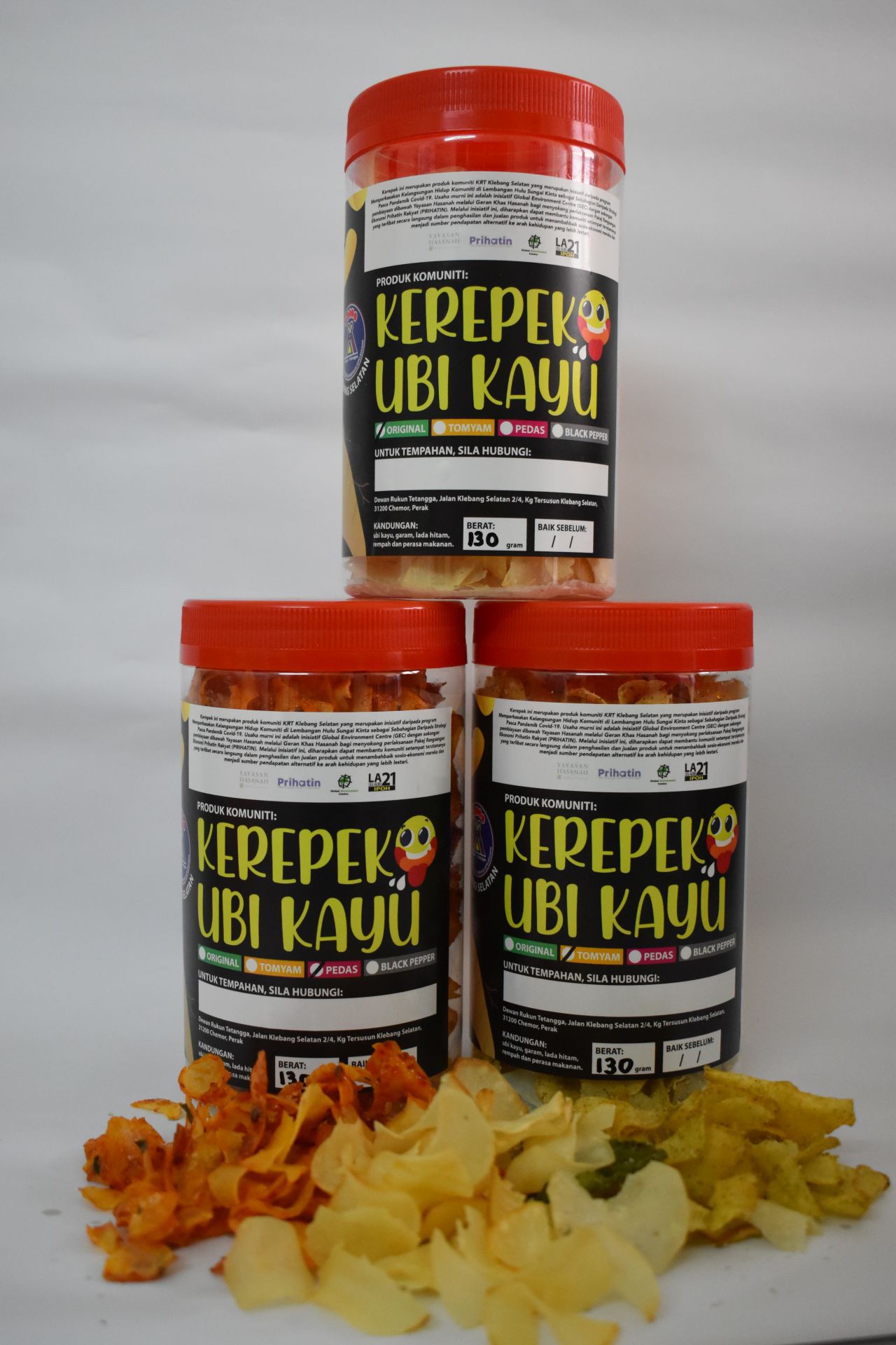 One committee group Jawatankuasa Penghasilan Kerepek Ubi Kayu dan Penjagaan Sungai (PKUKPS) for tapioca chips production has been established to ensure the initiatives is well implemented and sustained. To facilitate the production of tapioca chips, OSC has been officially launched and established on 10th April 2021 as a processing and selling centre for the local communities and has been inaugurated by Mayor of Ipoh. The OSC is located nearby existing community garden and basic ingredients needed for the tapioca chips production such as tapioca and lime leaf were planted and harvested from there. The chips were nicely packaged and marketed. The OSC and community garden also will serve as an education and awareness platform on food security program for the public such as educational institutions, private sectors, individuals and other communities. It can be a demo site on tapioca chip production where public can learn how to plant, care, harvest, process, packaging and marketing the tapioca products beside learn about other plants that are being planted in the community garden.