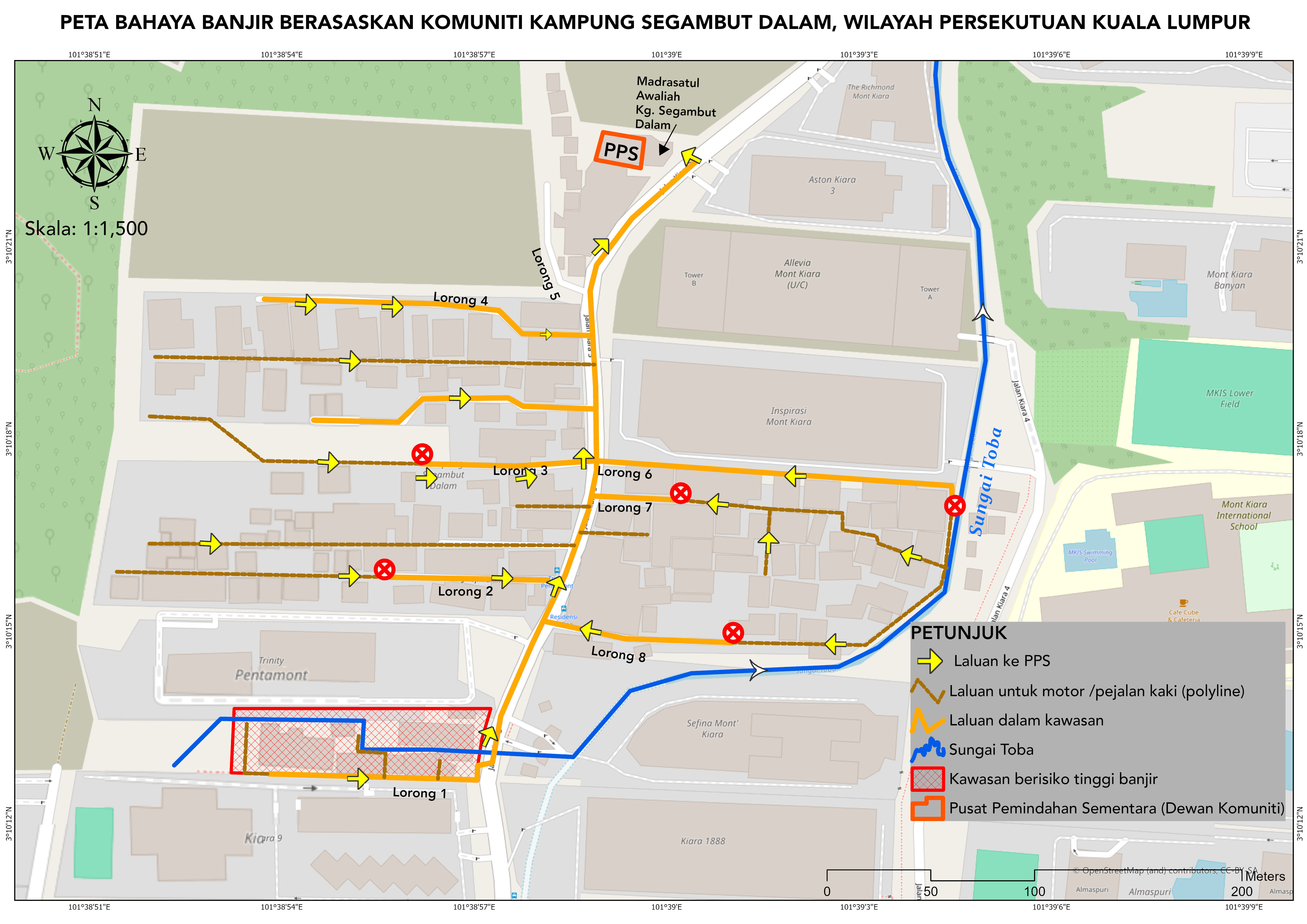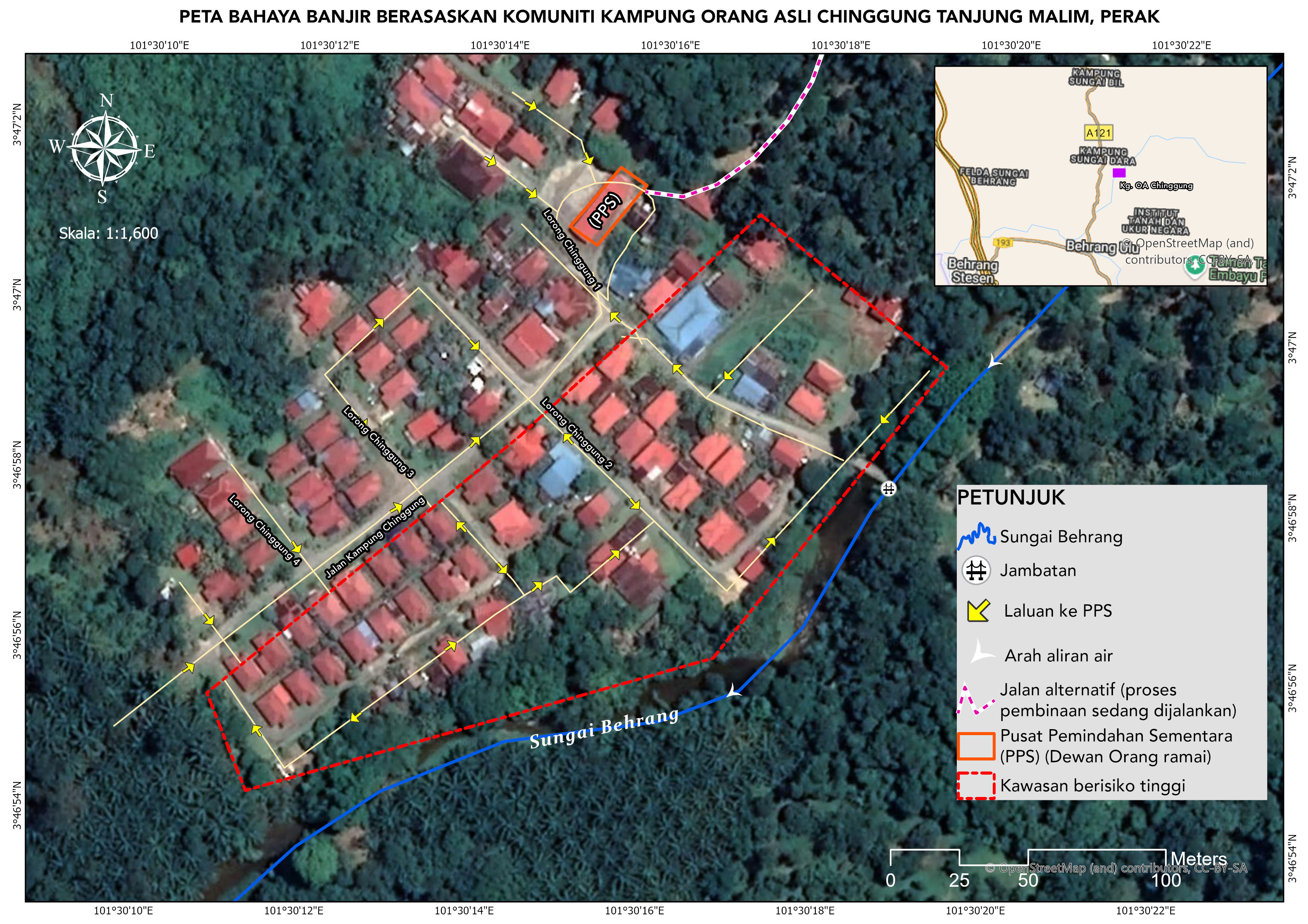 Following the completion of the ToT programme, one lead community was selected in each participating state to develop a Community-Based Flood Hazard Map (CBFHM) and a corresponding Community-Based Flood Response Plan (CBFRP). These were successfully completed by Kampung Orang Asli Chinggung in Perak, Taman Pinggiran FELDA Sungai Kelamah and Kampung FELDA Sungai Kelamah in Negeri Sembilan, Kampung Sri Jambu in Selangor, and Kampung Segambut Dalam in WPKL. The process involved community workshops, ground-truthing, and verification by local agencies to ensure accuracy and relevance to local flood conditions. By September 2025, all CBFHMs and CBFRPs were finalized and handed over to their respective District Offices and Civil Defence Departments for integration into state disaster preparedness systems. These community-led maps now serve as vital tools for early warning, emergency response, and flood risk mitigation at the local level.