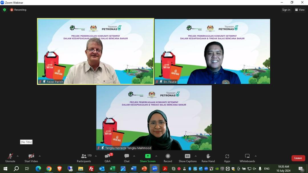 A series of six national webinars was completed between 2024 and 2025, engaging over 1,150 participants from local communities, schools, and government agencies. The webinars covered diverse topics such as natural disasters in Malaysia, integrated flood management, landslides, drought preparedness, and peatland fire prevention. Each session included quizzes and interactive discussions, leading to strong participant feedback calling for more frequent sessions. These awareness talks successfully enhanced public understanding of disaster risks, early warning measures, and climate adaptation at the community level